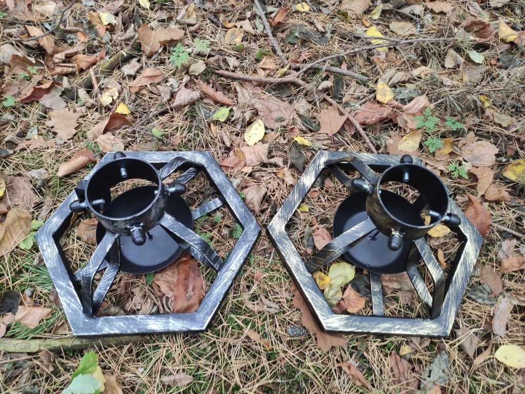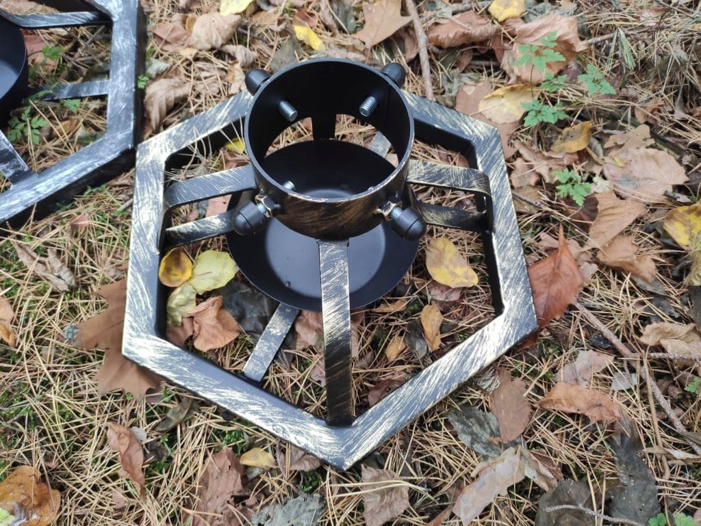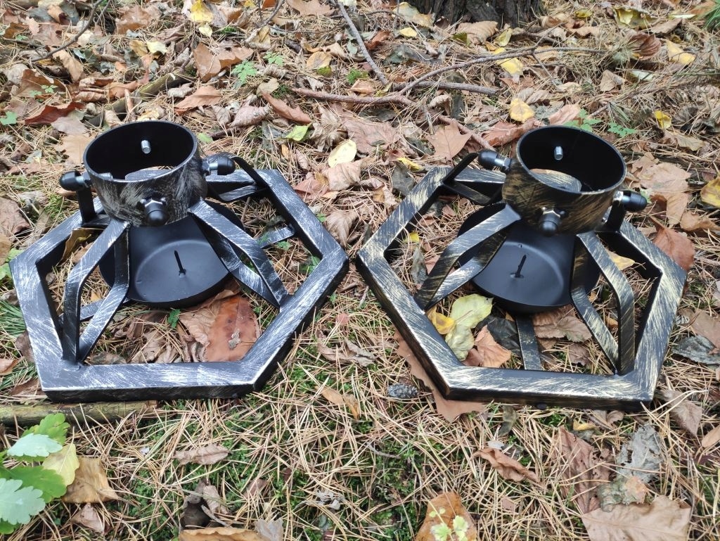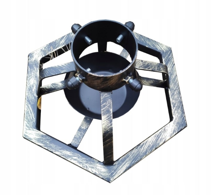 Malowany w kolorach złotej i srebrnej patyny. Mogę ewentualnie wysłać po prostu czarny. Bardzo stylowy wygląd oraz masywne wykonanie. Wymiary: szerokość u podstawy – 43cmx43cm, wysokość 22cm. Średnica otworu na choinkę 11cm. Miska na wodę oraz szpikulec ułatwiający ustawienie choinki. Wykonane z I gatunku Polskiej stali. Profil 30×30, płaskownik 20×4. Prosto od PRODUCENTA! . Idealny zestaw na prezent! Proszę o informację po zakupie dotyczącą wybranego koloru. W przypadku braku informacji wyślę złoty.
